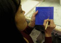 BEI DER HERSTELLUNG EINER LITHOPHANIE WIRD DAS BILD MIT FEINEM WERKZEUG IN EINE WACHSSCHICHT GESTOCHEN.